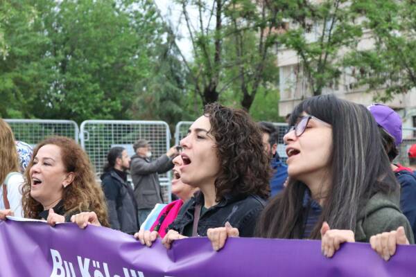 “Kadına şiddetin, sömürünün, baskıların ve sistemin değişmesi bitmesi için buradayız. Kadınlar her alanda mağdur ediliyor. Emekleri sömürülüp katlediliyor. Kadınların haklarını geri verin. İstanbul Sözleşmesi yürürlüğe konulsun. Yaşanan bu baskıları ve katliamları kabul etmiyoruz.”
