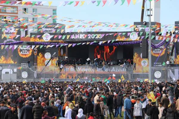 Newroz Parkı’nda yapılan kutlamaya alana girişler başladı. Halk “Bijî Serok Apo” sloganlarıyla alana girerken Newroz programının saat 10.00’da başlaması bekleniyor. Bu yıl ki kutlamalar Mereş merkezli deprem nedeniyle aynı zamanda anma niteliği de taşıyor.