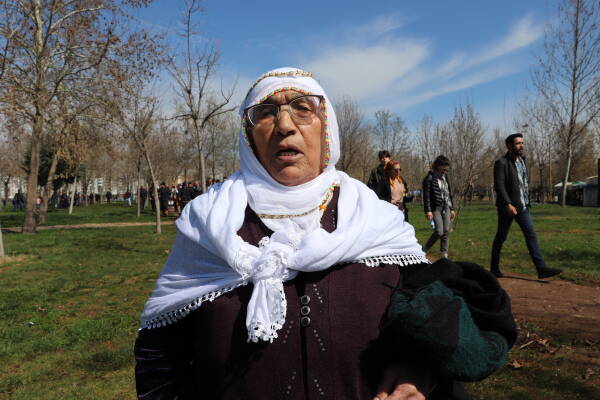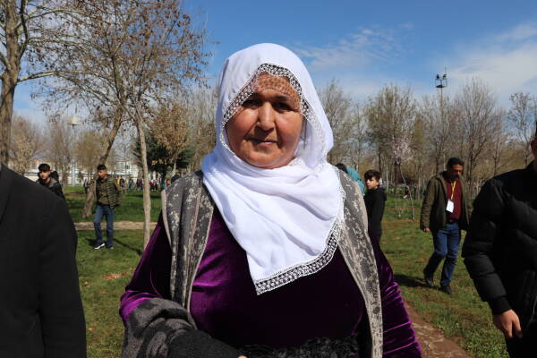 “Batman’dan buraya geldim. Bu Newroz barışa, kardeşliğe ve özgürlüğe vesile olur umarım. Biz cezaevi kapılarının açılmasını istiyoruz. Bütün halklar kardeştir. Bu katliam ve kan dursun artık, anneler ağlamasın artık. Biz Kürdüz, bu dünyaya Kürt olarak geldik ve Kürt olarak gideceğiz. Her Bijî Kürd û Kürdistan. Bütün Kürt halkının Newrozunu buradan kutluyorum. Seçimler için de şunu söylemek istiyorum; halkımız kendini tanısın ve bu köleliğin altından çıksın. Zulme ve köleliğe zulme yeter artık. Sesimiz bizim toprağımız, özgürlüğümüz ve her şeyimiz.”