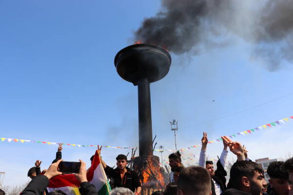 Yıllardır acısına, gördüğü zulme ve baskılara rağmen coşku ve renginden bir ödün vermeyen Amed halkı, dün depremde yaşamını yitirenler için Newroz alanını karaya bürüdü. 7’den 70’e herkesin katıldığı Newroz etkinliğinde halk, “Yasımız var ama direniş için buradayız” sözleriyle alana geldiğini ifade ederken, saatler süren etkinlikte depremde yaşamını yitiren insanlar bir an olsun unutulmadı. Hareketli müziklerin yanı sıra ağıt içerikli müziklerin çaldığı alanda her köşede sadece direniş ve isyan vurguları vardı. Tüm engellemelere rağmen alana akın eden yurttaşlar, zafer işaretleri yaparak “özgürlük” sloganlarını haykırdı.