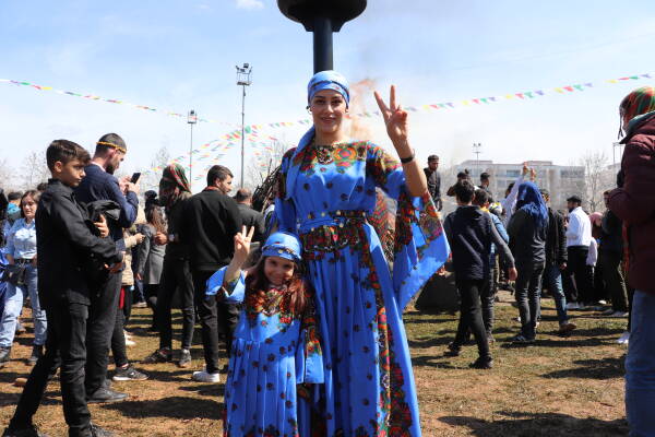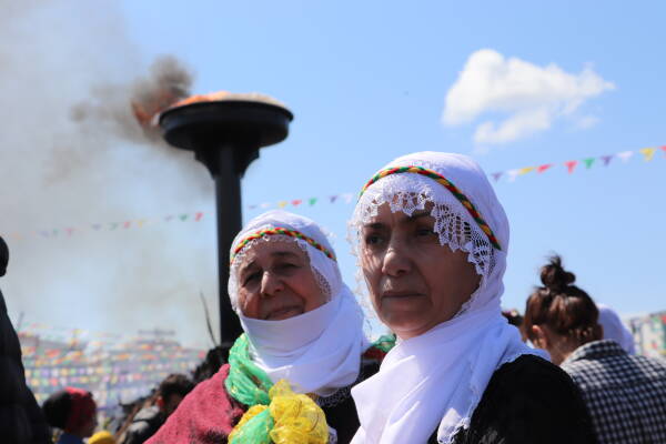 Giydikleri yöresel elbise ve sarı, kırmızı, yeşil şallar nedeniyle gözaltına alınmakla tehdit edilip alana alınmayan yurttaşlar ise giriş kapılarının dışında Newroz’u kutladı. Yaşamını yitiren depremzedeler için tutulan yası iliklerimize kadar hissettiğimiz Newroz alanında ise sürekli bir polis engeli vardı. Atılan sloganlar ve pankartları gerekçe gösteren polisler, etkinliğin bitimine dakikalar kala alanda bulunan gençlere biber gazı sıktı. Polis saldırısında 160 kişi gözaltına alındı. Gözaltına alınmak istenen bir anne ve çocuğu ise alanda bulunan yurttaşların engellemesiyle kurtartıldı. Alanda mikrofon uzattığımız kadınlar ise barış ve mücadele sözü verdi.
