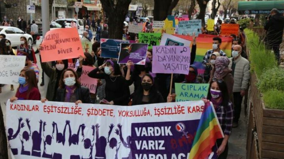 Haber Merkezi – Antep Demokratik Kadın Platformu, 8 Mart Dünya Kadınlar Günü'nü düzenledikleri kitlesel yürüyüşle kutladı. Kırkayak Parkı’nda bir araya gelen kadınlar, "İstanbul Sözleşmesi’ni değil cinayetleri engelle", "Emeğimiz, bedenimiz, kimliğimiz, özgürlüğümüz bizimdir" ile "Kadınlar eşitsizliğe, yoksulluğa, şiddete, işsizliğe karşı" pankartlarının yanı sıra "Jin jiyan Azadî", "Çıplak arama işkencedir", "Gülistan Doku nerede?" ve "Susmuyoruz korkmuyoruz itaat etmiyoruz" dövizleri eşliğinde Yeşilsu Parkı’na doğru yürüyüşe geçti. Yürüyüş sırasında katledilen kadınları hatırlatan kadınlar, sık sık "Jin jiyan azadi", "Bir kişi saha eksilmeyeceğiz", "Kadın cinayetleri politiktir", "Yaşasın kadın birliği" ve "İstanbul Sözleşmesi’ni uygula" sloganları attı. Sloganlar eşliğinde parka ulaşan kadınlar, burada zılgıtlar eşliğinde halay çekti. Daha sonra adınlar adına hazırlanan ortak metni Gül Fidan Özpolat okudu.