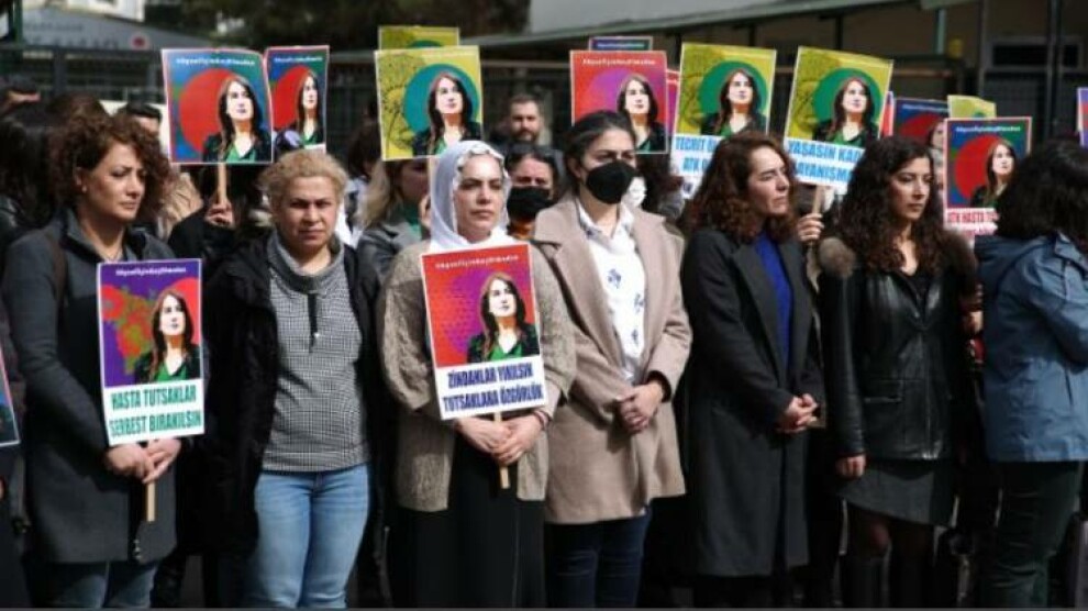 Açıklamanın ardından konuşan avukat Cemile Turhallı da, Aysel Tuğluk’un yargılandığı Kobanê Davası’na değinerek, şunları söyledi: “Yargılama bizim açımızdan bir erkek yargılamasıdır. Ankara 22’nci Ağır Ceza Mahkemesi iki haftada bir duruşma yapıyor ve özellikle Aysel Tuğluk’a zorla savunma yaptırmaya çalışıyor. Aysel Tuğluk’un durumuna bakıldığında bırakın ifade vermeyi, savunma yapmayı yaşamını bile idame ettiremiyor. Belli ki mahkeme ifadesini yapması için baskı yapmaya devam edecek. Kobanê davası 28 Şubat 11 Mart arasında devam edecek. Bizler de 8 Mart’ta yapılacak olan yargılamada bütün kadınlara, baroların kadın komisyonlarına ve merkezleri ile STK’lere mahkeme salonunda erkek yargıya karşı saf tutmaya çağırıyoruz.”