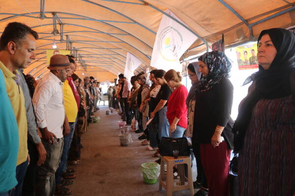 Bölge halkı her gün çadır eylemince yer alarak, Türkiye’nin bölgeye yönelik saldırıları karşısında bir duyarlılığın oluşmasını ve Kuzey ve Doğu Suriye hava sahasının kapatılmasını talep ediyor. Eylemin 9’uncu günün Eğitim Komitesi ve öğretmenler eyleme destek verdi.