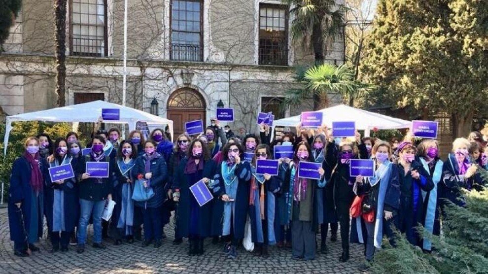 Boğaziçi Üniversitesi’nde akademisyenlerin 46. kez buluştuğu nöbet eyleminin yanı sıra, 8 Mart nöbeti de tutuldu. Güney kampüste toplanan akademisyenler “Kabul etmiyoruz”,