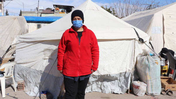 Evlerine giremeyen yurttaşlar ise çadırlarda yaşama tutunmaya çalışıyor. Güvenlik gerekçesiyle evlerinin önüne kurdukları çadırlarda yaşamlarını idame ettiren yurttaşlar soğuk havalarda zorlanırken hastası veya çocuğu olan aileler için bu zorluk iki katına çıkıyor. Evi hasar gördükten sonra deprem altında kalan yakınları için attığı yardım çığlıkları nedeniyle ses telleri hasar gören Türkan Laçki, depremin ardından çadırda kalan yurttaşlardan.