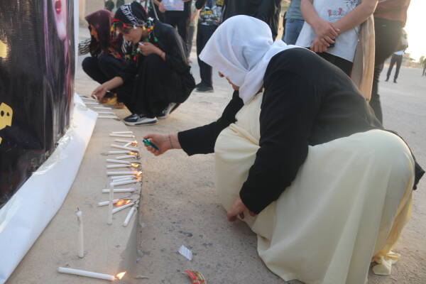 Anne Şemê Dêro daha sonra ağıt yakmaya başladı ve yaşamını yitiren çocuklarının isimlerini tek tek andı. Ardından Cîlan Berces’in anıtının önünde mumlar yakıldı ve direniş sözü verildi.