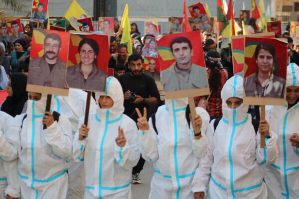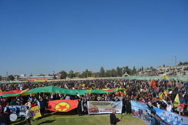Yürüyüşte, Kürt Halk Önderi Abdullah Öcalan'ın ve kimyasal silahlarla hayatını kaybeden HPG gerillalarının resimleri ile "Bizi öldürmeye, toprağımızı işgal etmeye ortak olmayın" yazılı pankartlar taşındı. Aynı zamanda genç kadınlar yürüyüş sırasında anti-kimyasal giysiler giydi. Qamişlo şehrinin Qasimo Camii önü, Kara Çember ve Ekaş Çemberi gibi üç koldan başlayan yürüyüş, 12 Mart'ta Şehitler Stadı'na doğru devam etti. Stadyuma ulaştıktan sonra yürüyüş mitinge dönüştü.