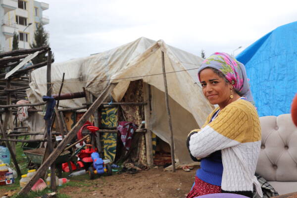 Depremden sonra üç gün dışarıda kaldıklarını ve o süreçte de kimsenin kendilerine çadır vermediğini belirten Meltem Soler, abisinin bulup getirdiği brandanın altında yaşadıklarını dile getirdi. Gidip çadır istediklerinde yetkililer tarafından azarlandıklarını söyleyen Meltem Soler, “Diğerleri çadır aldı biz alamadık. Kadınız gittiğimiz yerde azar işittik; fırça yedik sonra geldik yerimizde bekliyoruz. Hayvanlarımız var diye de çadır kente gidemiyoruz. Sesimizi biz kimseye duyuramıyoruz. Engelli maaşıyla biz geçimimizi sağlıyorduk artık o da yok mağduruz. Gelen yardımlar da buraya değil belirli alanlara ve yerlere gidiyor. Çamur içindeyiz üç tane çocuğumuz var iki aileyiz. Onun bunun getirdiği ekmekle karnımızı doyuruyoruz. Hayvanlarımızla ilgilenmekten yemeğe de gidemiyoruz” diye konuştu.