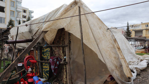 Depremden sonra üç gün dışarıda kaldıklarını ve o süreçte de kimsenin kendilerine çadır vermediğini belirten Meltem Soler, abisinin bulup getirdiği brandanın altında yaşadıklarını dile getirdi. Gidip çadır istediklerinde yetkililer tarafından azarlandıklarını söyleyen Meltem Soler, “Diğerleri çadır aldı biz alamadık. Kadınız gittiğimiz yerde azar işittik; fırça yedik sonra geldik yerimizde bekliyoruz. Hayvanlarımız var diye de çadır kente gidemiyoruz. Sesimizi biz kimseye duyuramıyoruz. Engelli maaşıyla biz geçimimizi sağlıyorduk artık o da yok mağduruz. Gelen yardımlar da buraya değil belirli alanlara ve yerlere gidiyor. Çamur içindeyiz üç tane çocuğumuz var iki aileyiz. Onun bunun getirdiği ekmekle karnımızı doyuruyoruz. Hayvanlarımızla ilgilenmekten yemeğe de gidemiyoruz” diye konuştu.