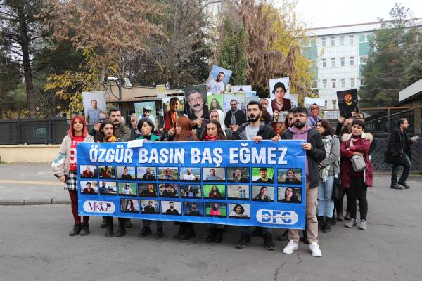Özgür basına yönelik sayısız hak ihlalinin devam ettiğini ve yargının da özgür basın karşısında bir cezalandırma yöntemi olarak kullanıldığını belirten Dicle Müftüoğlu, “8 Haziran günü bir kez daha bu gelenek hedef alındı. Diyarbakır Cumhuriyet Başsavcılığı tarafından başlatılan soruşturma kapsamında 20’si gazeteci olmak üzere 22 kişi ev baskınları ile gözaltına alındı. Meslektaşlarımız hakkında gösterilebilecek bir tek suç delili dahi olmadığı bilindiği için, arkadaşlarımız 8 gün boyunca gözaltında tutuldu, mesleklerini yapmaları engellendi. Emniyetin, baskın yaptığı kurumlardan el koyduğu ve ‘suç delili’ gibi paylaştığı fotoğraf da zaten hedef alınanın sadece gazetecilik olduğunu açıkça gösterdi” ifadelerinde bulundu.