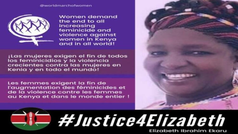 Haber Merkezi - Kenya'nın Isiolo bölgesinde yaşayan kadın hakları, barış ve aynı zamanda bir çevre ve toprak hakları savunucusu olan Elizabeth İbrahim Ekaru, 3 Ocak’ta komşusu tarafından katledildi. Elizabeth İbrahim Ekaru’nun katledilmesine dair Dünya Kadın Yürüyüşü (World March of Women) sosyal medya hesaplarından açıklama yaptı.