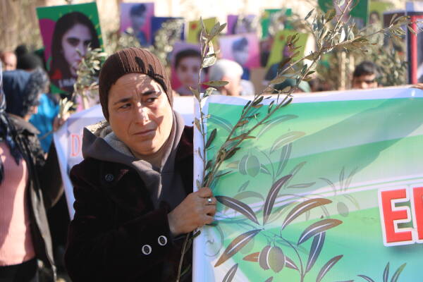 Konuşmanın ardından atılan “Yaşasın Efrin direnişi”, “Yaşasın çağın direniş şehitleri” sloganları ile eylem son buldu.