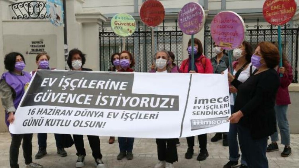 İMECE Ev İşçileri Sendikası adına açıklama yapan Yıldız Ay ve Zeynep Ayvalıtaş, ev emekçisi kadınların her türlü güvenceden yoksun çalıştırıldıklarına vurgu yaparak ev işçilerinin mesleki standartların oluşması için sendikal çalışmalarını da sürdüreceklerini kaydetti. Açıklamada “Camdan düşerek hayatını kaybeden onlarca ev işçisi arkadaşın olduğuna tanık olduk, hayatını sakatlanarak devam ettirmek zorunda olan arkadaşlarımız oldu ve pek çoğumuz menüsküs, bel fıtığı, astım, alerji gibi çok çeşitli meslek hastalıklarıyla yaşamaya devam ediyoruz” denildi.