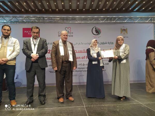Gazze Kadın İşleri Bakanlığı, toplumun gelişimine önemli katkılarda bulunan ve hizmet veren çok sayıda kadını ödüllendirdi.