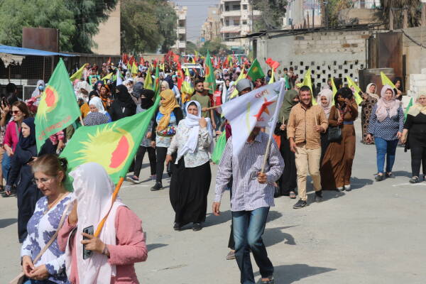 Qamişlo - Cizîrê Bölgesi’ndeki gençler, Devrimci Gençlik ve Genç Kadınlar öncülüğünde Kürt Halk Önderi Abdullah Öcalan’a yönelik ‘9 Ekim komplosunu’ kınamak için kitlesel yürüyüş düzenledi. Kuzey ve Doğu Suriye’nin Qamişlo kentindeki Osman Sebrî dört yolunda başlayan yürüyüş, Birleşmiş Milletler temsilciliğine kadar sürdü.