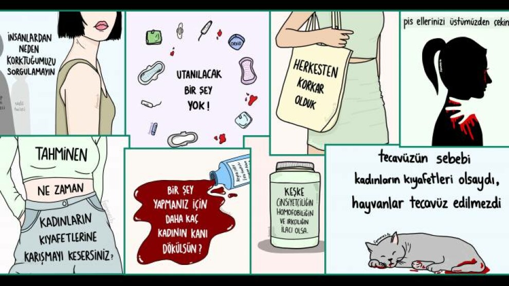 Haber Merkezi - Kadın katliamları ve kadına yönelik gerçekleşen sözlü tacizlerin had safhaya çıktığı son günlerde kadınlar her alanda seslerini duyurmaya ve ayyuka çıkan şiddete dur demeye çalışıyor. İngiliz Dil Bilimi 3. Sınıf Öğrencisi Dina Oğuz, bu kadınlardan yalnızca biri. Çocukluğundan bu yana severek çizim yaptığını söyleyen Dina Oğuz, femmes.tr isimli kullanıcı hesabı üzerinden kadınların en doğal hallerinin dahi şiddet malzemesi yapılmasından, giyim şekli başta olmak üzere kadınların maruz kaldığı tacizi çizimleri ile paylaşıyor. Dina’nın odağında güncel kadın temaları yer alırken, bunlar çizimlerine de yansıyor. Dina Oğuz yaptığı çizimleri ve çizimleriyle nasıl bir mesaj vermek istediğini anlatıyor bize…