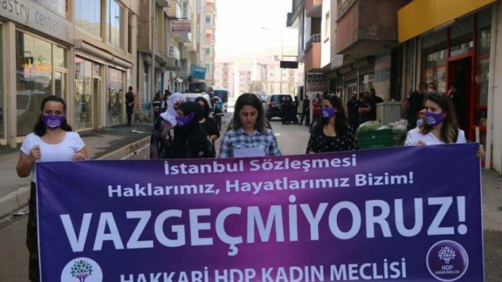 Çocuğa yönelik artan cinsel istismar ve İstanbul Sözleşmesi’nin feshedilmesine karşı açıklamada bulunan HDP Hakkari Kadın Meclisi, “Kadınlar olarak sokaklarda, meydanlarda ve alanlarda yaşamak istediğimizi haykırmaya devam edeceğiz. Haklarımızın ve hayatlarımızın teminatı olan İstanbul Sözleşmesi'ni savunacağız. İstanbul Sözleşmesi bizimdir, vazgeçmeyeceğiz" dedi.