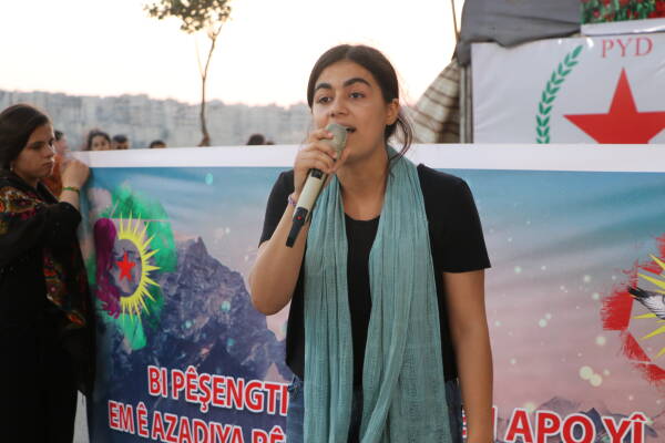 Yürüyüşün ardından basın açıklamasını yapan Devrimci Gençlik Hareketi üyesi Hêva Bekir, “24 yıldır uluslararası komplo ile İmralı adasında tutulan Önder Apo üzerindeki tecrit kırılana kadar, özgürlüğü sağlanana kadar asla direnişimizden vazgeçmeyeceğiz” dedi.