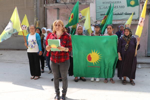 Halep – Kongra Star, Türkiye’nin Şehba ve Til Rifet’a yönelik saldırı ile tehditlerini kınamak için Halep’in Şêx Meqsud mahallesinde bulunan Şehit Gulê Selmo Komüni önünde açıklama yaptı. Açıklamada Kongra Star bayrakları taşındı.