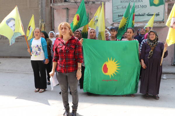 Açıklama “Kahrolsun İhanet" ve "Jin jiyana Azadî (Kadın, yaşam, özgürlük)" sloganıyla sona erdi.