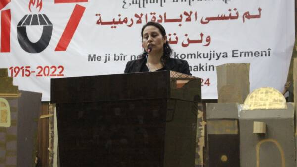 Kuzey ve Doğu Suriye Ermeni Cemaati Meclisi Eş Başkanı Erif Teteriyan da “Bu katliamı asla unutmayacağız. Dün Osmanlı’ydı, bugün Türk devleti halka karşı soykırım planı yapıyor. Elbette bu plan, uluslararası güçlerin suskunluğu ve onaylarıyla gerçekleşiyor. Bugün Özyönetim çatısı altında biz Ermeni halkı olarak bir kez daha kendi ayaklarımız üzerinde duruyoruz, kendimizi örgütledik ve gücümüzü tanıdık. Ve bir daha bize karşı katliam yapılmasına izin vermeyeceğiz” dedi.