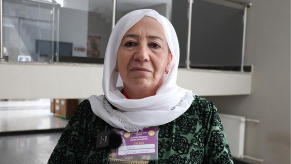 Colemêrg’in Gever ilçesinden konferansa katılan Barış Annesi Amine Ergüner, konferansın Abdullah Öcalan’ın fiziki özgürlüğüne vesile olmasını dilerek konuşmasına başlıyor. Amine Ergüner, “Anneler savaş gördü, çocuklarının parçalanmış bedenlerini gördü, cezaevi gördü, işkence gördü, bunlara rağmen onurlu bir barış dedi. Öcalan üzerine düşen sorumluluğu yerine getirdi. PKK sorumluluğunu yerine getirdi, peki devlet ne yapıyor? Devlete nasıl inanalım? Neden inanalım, aylar geçti üzerinden hala bir adım atılmış değil. Bu sürecin tüm sorumluluğunu Önderliğin omuzlarına bırakmayalım, tüm halkların ve devletin de omuzlarında bir sorumluluk var. Hepimiz bu sorumluğu üstlenmeliyiz” çağrısı yapıyor.
