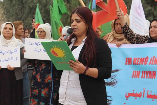 Kadınların faşizme ve egemen güçlere karşı iradelerine dikkati çeken Yisra Ismaîl, “ Zulme başkaldıran ve temel haklarını isteyen herkes ya esir alınıyor ya da katlediliyor. Zindan duvarları birçok işkenceye ve insanlık dışı uygulamalara ve özgürlük talep eden halkların direnişine tanıklık etmiştir. Egemenliğini baskıyla sürdürmeye çalışan bütün devletler bu kirli siyaseti yürütüyor ve halka korku salıyordu. Ancak kadınların öncülüğünde bu korku kırıldı ve özgürlük talebinde bulunan herkes sahaya çıkıp hakkını istedi. Bugün bir devrim gerçekleşti ve tüm dünyada yayıldı. Bu nedenle toplumun değerine ve kadının iradesine karşı soykırım politikası tüm kirli yöntemlerle yürütülmektedir” ifadelerine yer verdi.