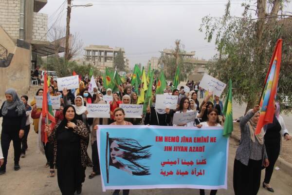 Yürüyüş “Jin, jiyan, azadî” ve “Bijî berxwedan” sloganlarıyla sona erdi.