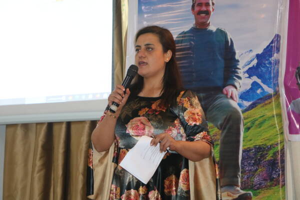 Efrîn-Şehba Jineoloji Merkezi Üyesi Zahîde Memo, “İlk bilimsel konferansımızı gerçekleştiriyoruz. Konferansta Önder Apo’nun kadın ve jineoloji üzerine perspektiflerini okuduk. Sinevizyon gösterimlerinin yanı sıra yıllık çalışmalarımızı katılımcılara sunduk. Buna ilişkin görüşlerini dile getirdiler. Eksikliklerimizi tartıştık. Genç kadınlar kadına yönelik şiddet üzerine hazırladıkları tiyatro oyununu gösterdi. Bu konferansta çocuklara yönelik şiddet, kadının birbirine olan sevgisi, kadın ekonomisinin önemi ve kadına yönelik teknolojik şiddet konularında atölyeler düzenledik. Konferansımıza sanatın rengini katmak istedik. Konferansı şarkılarla bitirmek istedik” dedi.