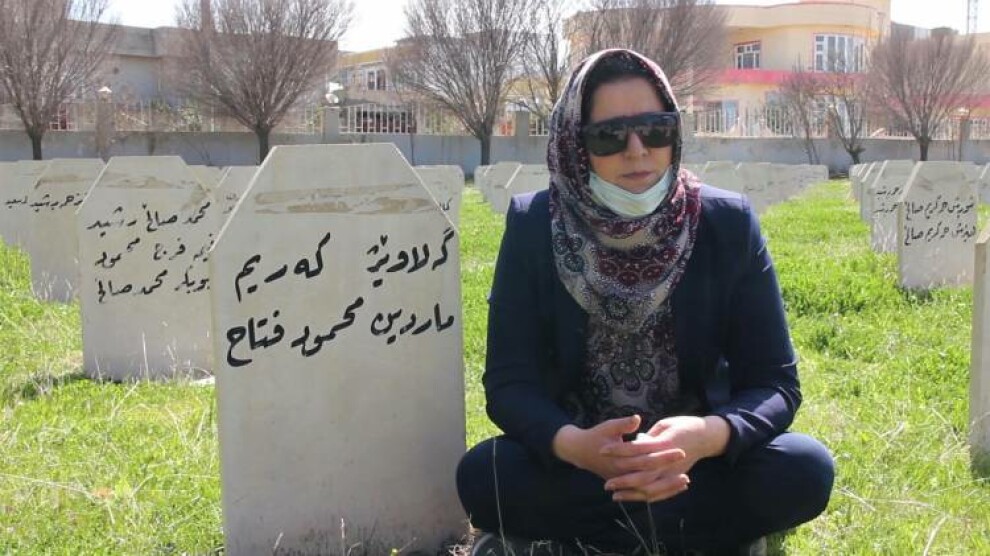 Mardin hikayesini, kendisine de ait bir mezarın bulunduğu ve üzerinde adının yazıldığı Halepçe Şehitliği’nde anlattı bize. Kendi mezarının başına oturarak, “Burada yatan benim, ama gerçekte yaşıyorum” diyerek, adına neden bir mezar yapıldığı gerçeğini de şöyle anlatıyor Mardin: “Şu yanına oturduğum mezar da benim mezarım. Irak hükümeti Halepçe katliamında kaybolan ve izine rastlanmayanlar için bir yasa çıkararak hepsini ölü ilan etti ve Halepçe mezarlığında temsili mezarlar yapıldı onlar için. Ben de yaşayan ama aynı zamanda resmiyette ölü olarak geçen Halepçelilerdenim.”