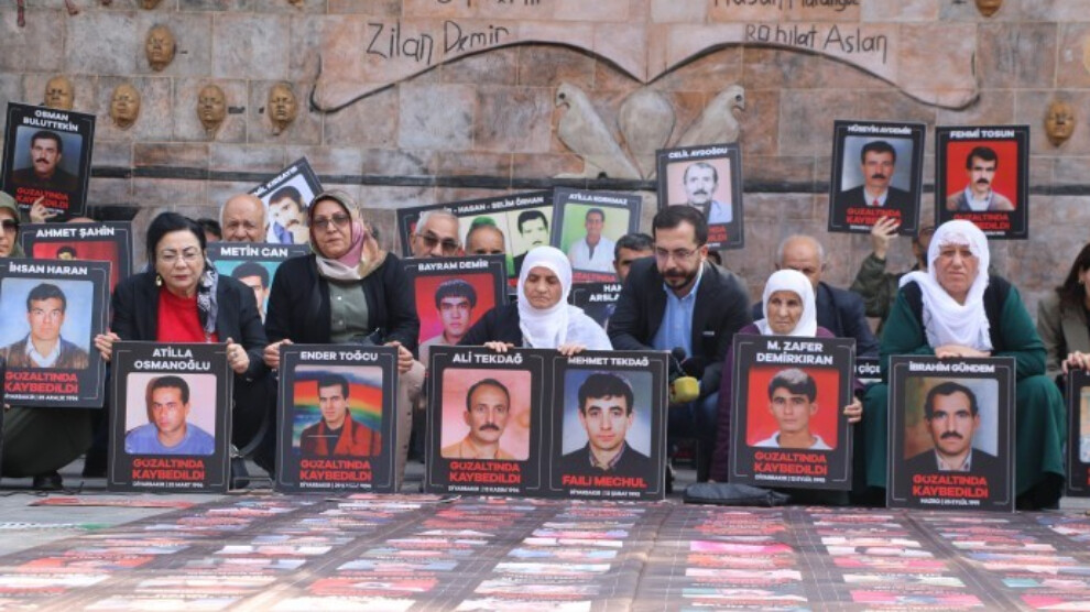 Amed - Kayıp yakınları ve İnsan Hakları Derneği (İHD) kayıpların bulunması ve faillerinin yargılanması talebiyle başlattıkları eylemlerine devam etti. İHD Amed Şubesi ve kayıp yakınları, eylemlerinin 874’üncü haftasında Rezan (Bağlar) ilçesinde bulunan Koşuyolu Parkı’ndaki Yaşam Hakkı Anıtı önünde bir araya geldi. Bu hafta 13 Kasım 1994’te gözaltına alınıp kendisinden bir daha haber alınamayan Ali Tekdağ’ın akıbeti soruldu.