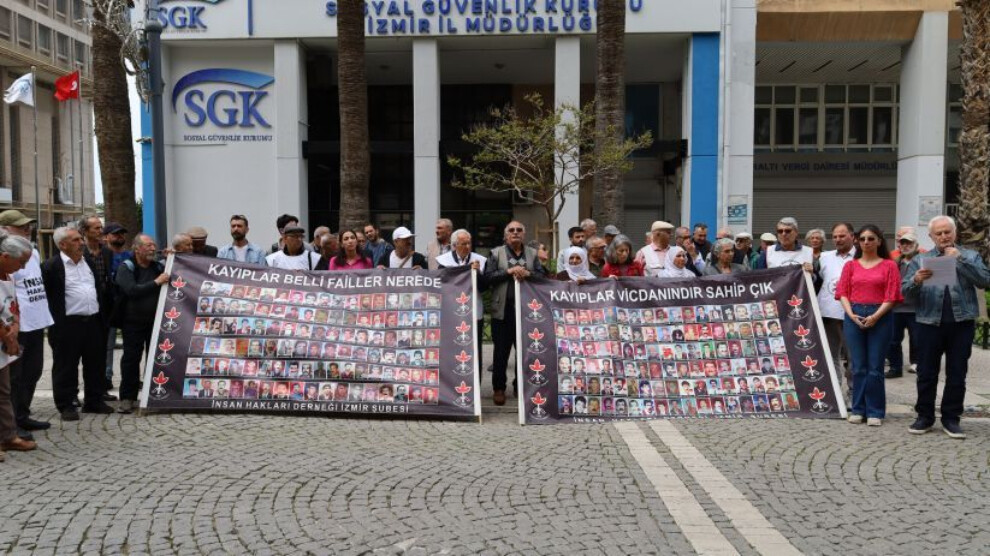 İHD İzmir Şubesi’nin iki haftada bir “Kayıplar bulunsun, failler yargılansın” talebiyle gerçekleştirdiği eylem, Konak Eski Sümerbank önünde devam etti. “Kayıplar vicdanındır, sahip çık”, “Kayıplar belli, failler nerede” yazılı pankartların taşındığı eylemde basın metnini, kitle adına İHD İzmir Şube yöneticisi Mustafa Kızartıcı okudu.
