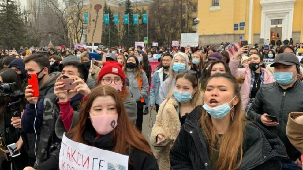 Haber Merkezi- 8 Mart Dünya Kadınlar Günü’nde Kazakistan'ın Almatı kentindeki yetkililer, kadınların talep ettiği yürüyüşe ilk kez izin verdi. Kazakistan'da kadın haklarına dikkat çekmek isteyen farklı yaş ve cinsiyetten yüzlerce insan şehirde beş kilometrelik yürüyüşe katıldı.