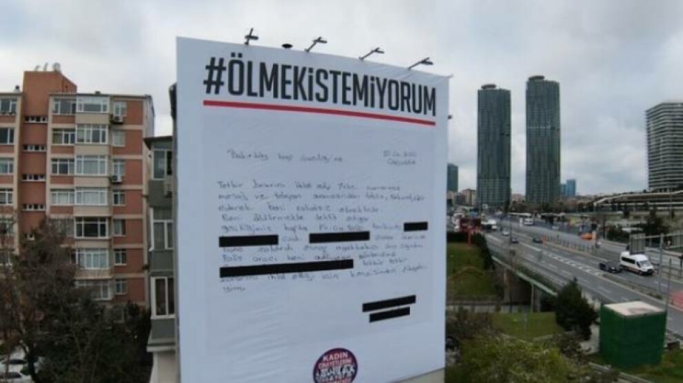Haber Merkezi- Kadın Cinayetlerini Durduracağız Platformu, Kadına yönelik şiddete dikkat çekmek ve İstanbul Sözleşmesi’nin Cumhurbaşkanlığı Kararnamesi’yle feshedilmesini protesto için İstanbul Zincirlikuyu metrobüs durağı yakınındaki bir bina üzerine “Ölmek İstemiyorum” yazılı dev bir şikayet dilekçesi astı.
