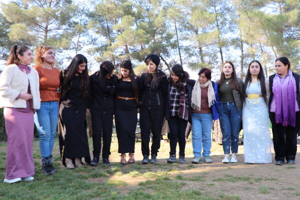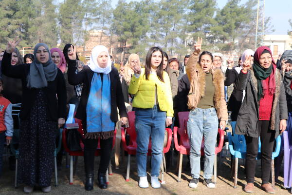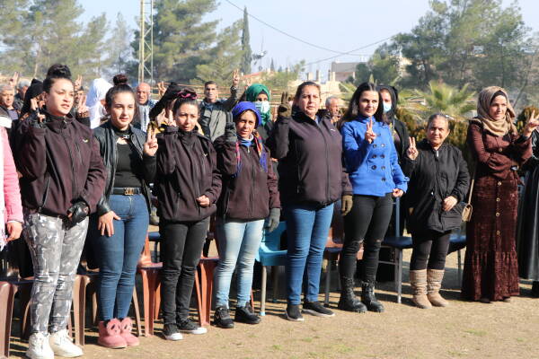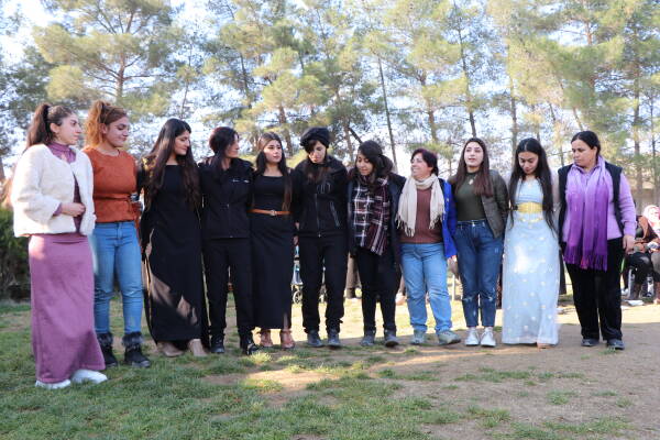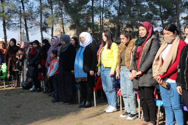 Yapılan konuşmaların ardından Kürt, Arap, Asuri ve Süryani kadınlar "Jin Jiyan Azadî" sloganları eşliğinde halay çekti.
