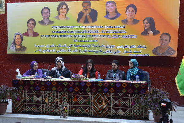 Qamişlo –Kuzey ve Doğu Suriye Kongra Star Toplumsal Alan Komitesi, 'Kadın devrim şehitlerinin izinde özgür toplum inşa edeceğiz' şiarıyla, ilk konferansını gerçekleştirdi. Konferans, Kuzey ve Doğu Suriye düzeyinde 225 delegenin katılımıyla Qamişlo şehrinde gerçekleştirildi.