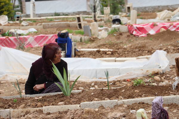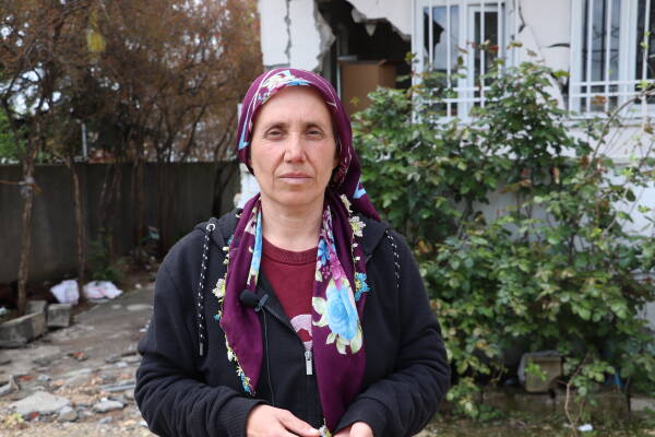 Ailesinden 13 kişiyi kaybeden Sakine Mutlu bu sene bayramda bütün mezarları gezecek. Kentte 10 yılda dolacak mezarlığın iki günde dolduğunu anlatan Sakine Mutlu, “10 yılda dolacak mezarlık iki günde doldu. Şehirdeki mezarlıkların hepsi doldu. Bunlar hepsi bizim ölülerimiz. Zamanında kurtarmak için gelselerdi yarısı kurtulurdu. Benim yeğenim üç gün boyunca bağırdı. Bir su istedi. Kimse onu çıkaramadı. Çocuk bağıra bağıra öldü. Yüzbinlerce insan ölüme terk edildi. Zamanında gelmeyerek o insanları ölüme terk ettiler. Hala daha enkaz altından çıkan cenazeler var. Ailemin mezarının yeri belli diye ben mutluyum” diyor.