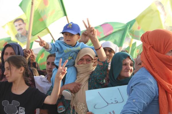 Hesekê – Türkiye Cumhurbaşkanı Tayyip Erdoğan, 4 Mayıs'ta Kuzey ve Doğu Suriye’de işgal altında olan Efrîn, Ezaz, Bab, Cerablus, Girê Spî ve Serêkaniyê gibi yerlere “sömürge evleri” inşa edeceğini ve buralara bir milyon mülteciyi yerleştireceğini duyurdu. Serêkaniyê Kampı’ndaki göçmenler, bu projeyi kitlesel bir yürüyüşle protesto etti ve bölgenin demografik yapısını değiştirmek amacıyla planlanan bu projeye sessiz kalan insan hakları örgütlerini kınadı. Yürüyüş Serêkaniyê Kampı Meclisi önünde başladı ve kampın sonunda ise yürüyüş mitinge dönüştü. Yürüyüşte Kongra Star bayrakları, Kürt Lider Abdullah Öcalan’ın fotoğrafları ve “Demografik yapının değiştirilmesine hayır”, Katliam ve göçe karşı tüm bileşenlerle direneceğiz” yazılı pankartlar taşındı.