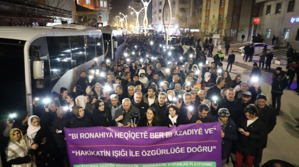 Mûş Demokratik Kurumlar Platformu, Kürt Halk Önderi Abdullah Öcalan'a dönük gerçekleştirilen 15 Şubat Uluslararası Komplosunu protesto etmek amacıyla fenerli yürüyüş ve basın açıklaması gerçekleştirdi. Kitle, Yeşilyurt Mahallesi sağlık ocağı önünde bir araya gelerek Fidanlık kavşağına yürüdü. Kitle yürüyüş boyunca “Selam selam İmralı’ya bin selam”, “Bê Serok jiyan na be” sloganları attı.