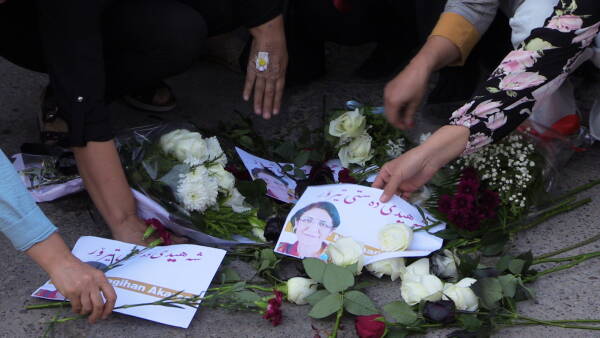 Jineoloji Akademisi Üyesi Nagihan Akarsel’in katledildiği yere karanfiller bırakan kadınlar, YNK Ofisine yürüdü, katillerin biran önce bulunması istendi.