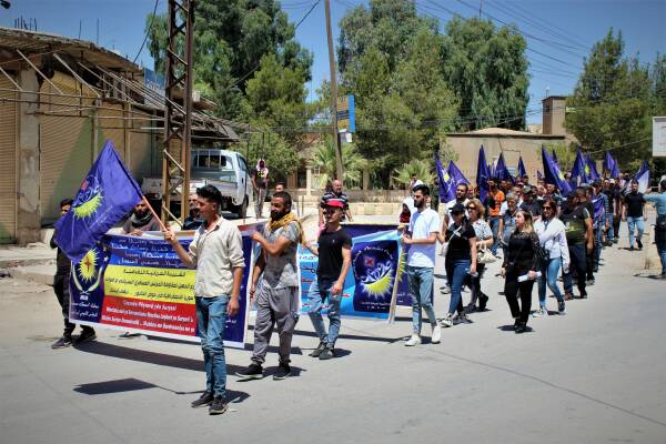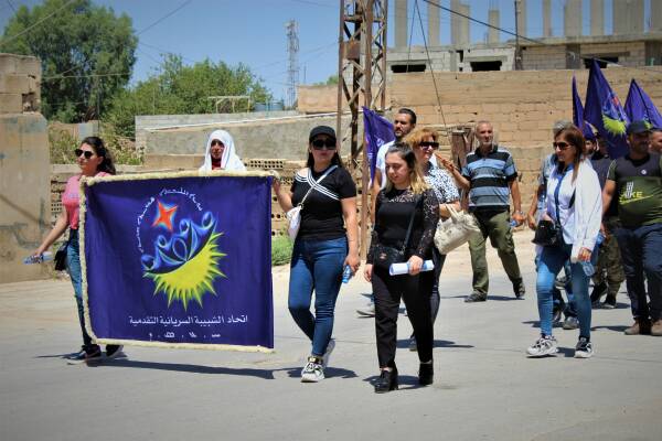 Süryani İlerici Gençlik Hareketi, Til Temir'de Kuzey ve Doğu Suriye'ye ve özellikle Habur Nehri kıyılarına yönelik saldırıları kınamak amacıyla bugün Til Temir ilçesinde yürüyüş düzenledi.