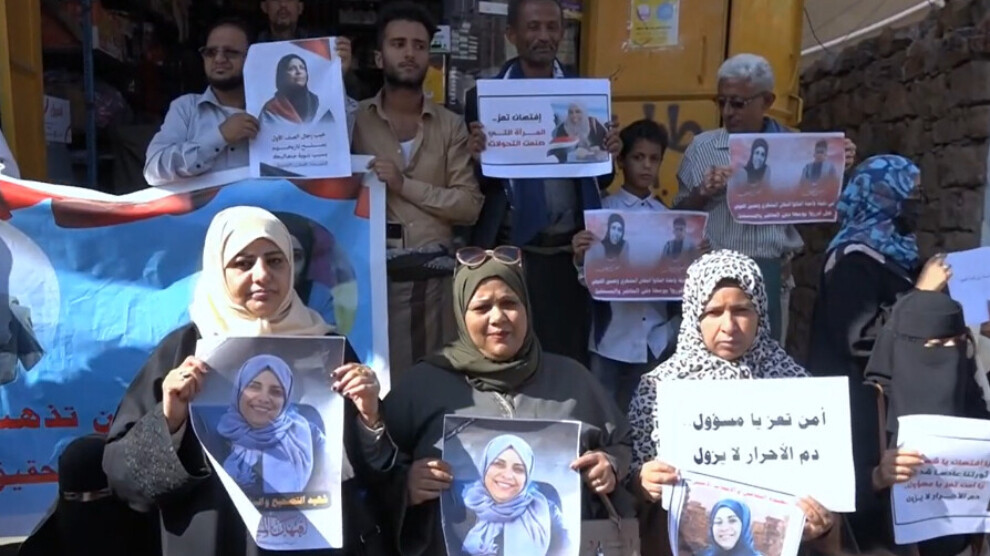 Yemen’in Taiz kentinde kadın örgütleri ve aktivistler, Aftehan el-Meşheri’nin katledilmesine karışan tüm faillerin yakalanması ve davanın hızlı, açık şekilde görülmesi talebiyle İstinaf Mahkemesi önünde protesto düzenledi.