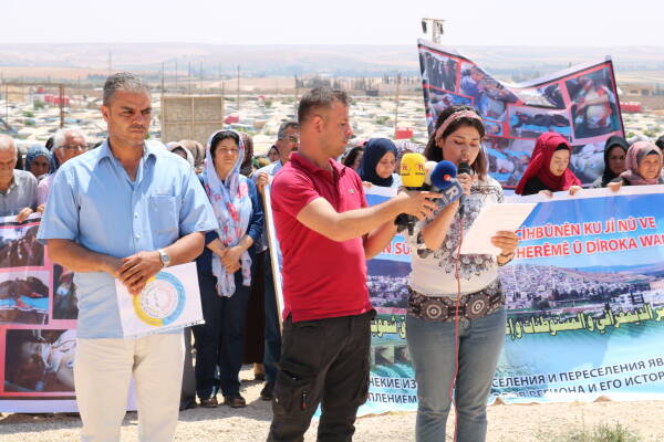 Efrin Bölgesi Eğitim Kurulu Eş Başkanı Bêrîvan Xelîl, Türk devletinin Kürt halkına yönelik bir suç işlediğini belirterek, Türkiye destekli çetelerin Suriye’de konumlandırıldığını kaydetti. El-Rai, El-Bab, Ezaz, Merei ve Efrin gibi bölgelerin işgal edilmesinden sonra binlerce yerli halkın göç ettirildiğini sözlerine ekleyen Bêrîvan Xelîl, “Türk devleti, bu saldırılarla insan haklarını ihlal ediyor ve Efrin'in doğasını ve tarihi yerlerini yağmalıyor. Erdoğan'ın faşizmi bunlarla yetmedi, birçok Batılı ve Arap devletinin yardımıyla Efrin'in demografisini değiştirmek için büyük bir girişimde bulundu. Efrin’in yerli halkı göç ettikten sonra Türk devleti çetelerini Efrin'de konuşlandırdı. Türk devleti, halkımıza yönelik soykırım politikasını sürdürmektedir. Geçtiğimiz günlerde Türkiye Cumhurbaşkanı Erdoğan, Til Rıfat ve Minbic'e saldıracağını açıklamış ve halkımıza karşı soykırım politikası izleyeceğini söylemiştir" ifadelerinde bulundu.