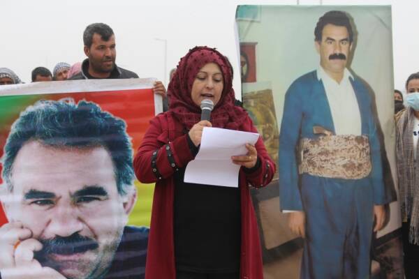 Kürt Halk Önderi Abdullah Öcalan’ın durumuna ilişkin değerlendirmelerde bulunan Îman Mihemed, “Önder Abdullah Öcalan’a yönelik tecrit insanlığa yönelik bir tecrittir. Bugün bölgemize yönelik saldırılar, Önder Apo üzerindeki tecridin devamıdır. Her şey birbirine bağlıdır. Nasıl ki uluslararası devletlere saldırılara sessiz kalıyor, Önder Apo’ya yönelik komploda da ve bugün ona dönük tecritte de sessiz kaldılar. Amaçları bir ve aynı siyaseti yürütüyorlar. Tecrit, saldırı ve kadınları hedef alarak Demokratik Ulus projesini yenilgiye uğratmak istiyorlar. Direniş hattını seçtik. Jin, jiyan, azadî felsefesiyle tüm katliam planlarının boşa çıkaracağız. Önder Apo’nun fiziki özgürlüğünü sağlayacağız” dedi.