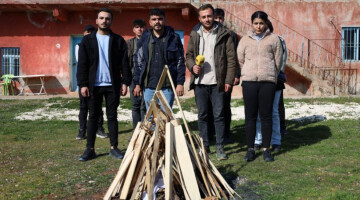 DEM Parti Riha Gençlik Meclisi, 2025 yılının ilk Newroz ateşini Kürt Halk Önderi Abdullah Öcalan'ın köyü Amara'da yaktı.