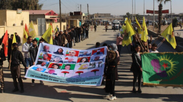 Tişrîn Barajı’ndaki saldırılara karşı Suriye Devrimci Gençlik Hareketi yürüyüş düzenledi.