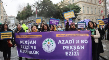 İran devleti tarafından idam cezası onaylanan Pexşan Ezîzî’ye destek veren DEM Parti Kadın Meclisi konsolosluk önünde eylem yaptı. Kadınlar, kararın geri çekilmesini isterken mücadeleden vazgeçmeyeceklerini belirtti.