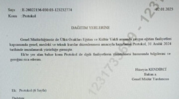 Türk Eğitim Bakanlığı, Ülkücü Ocakları ile protokol imzaladı. Bu kapsamda Ülkü Ocakları okullarda yaygın eğitim faaliyetleri kapsamında genel, mesleki ve teknik kurslar açacak.