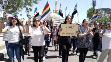 Süveyda’da kurulan ‘kontrol noktalarının’ amacının halkı korkutmaya yönelik olduğunu belirten kadınlar, “Rejimin baskıları bizi korkutamaz” diyerek, eylemlerini sürdüreceklerinin mesajını verdi.